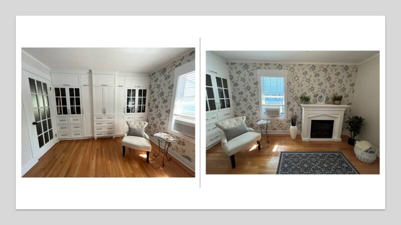 J'ai modifié cette photo afin de rendre la pièce plus attrayante dans le but de la vente d'une maison, et ce, sans avoir à redécorer la chambre. Pour ce faire, j'ai utilisé un logiciel spécialisé qui me permet de redécorer entièrement une pièce à partir d'une simple photo, selon plusieurs styles différents suggérés.